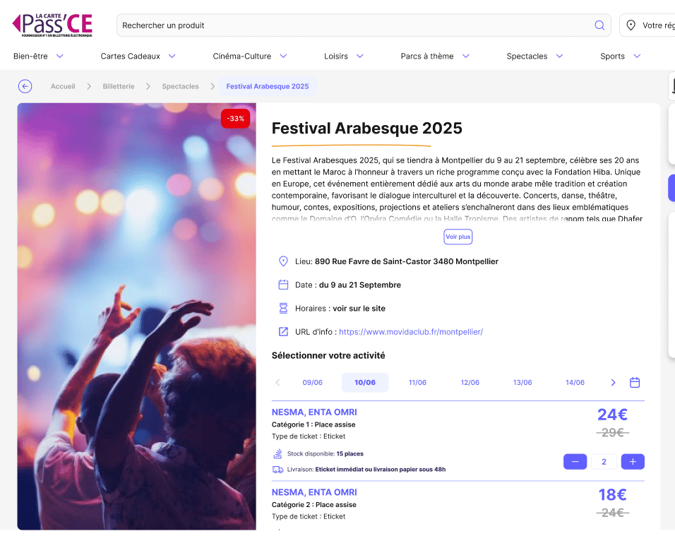 Mobile-first redesign of a B2C ticketing platform for employee benefit committees. Solved catalogue complexity, layout, and mobile navigation at scale.